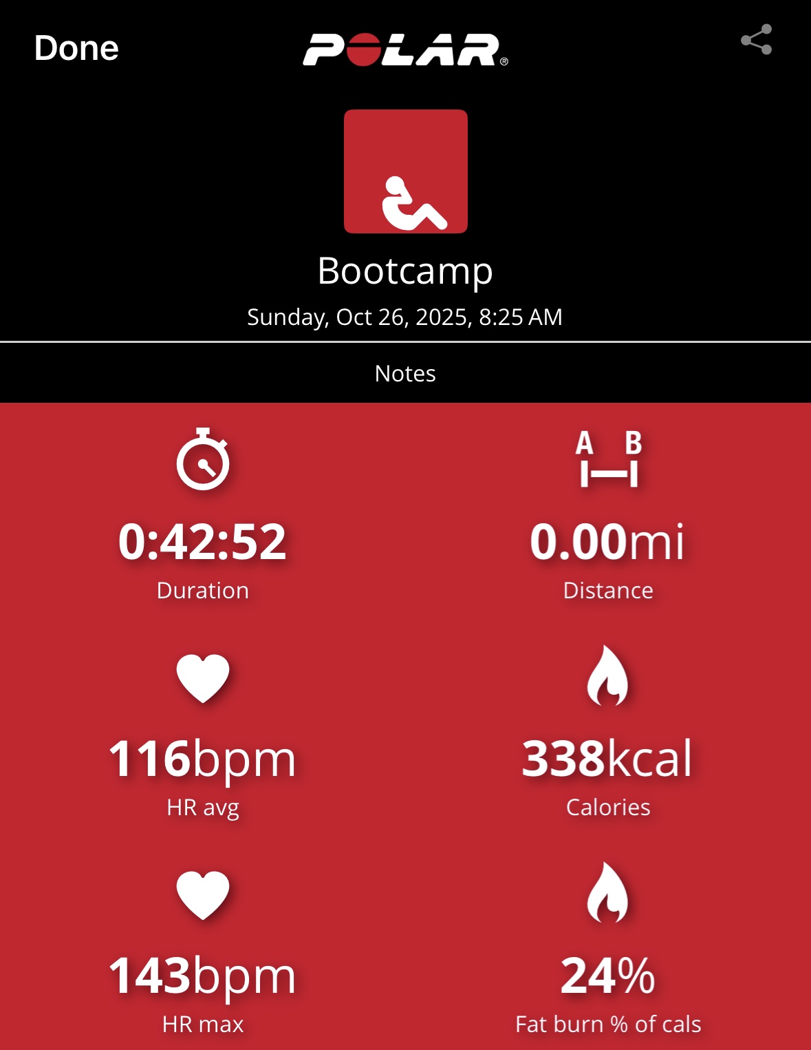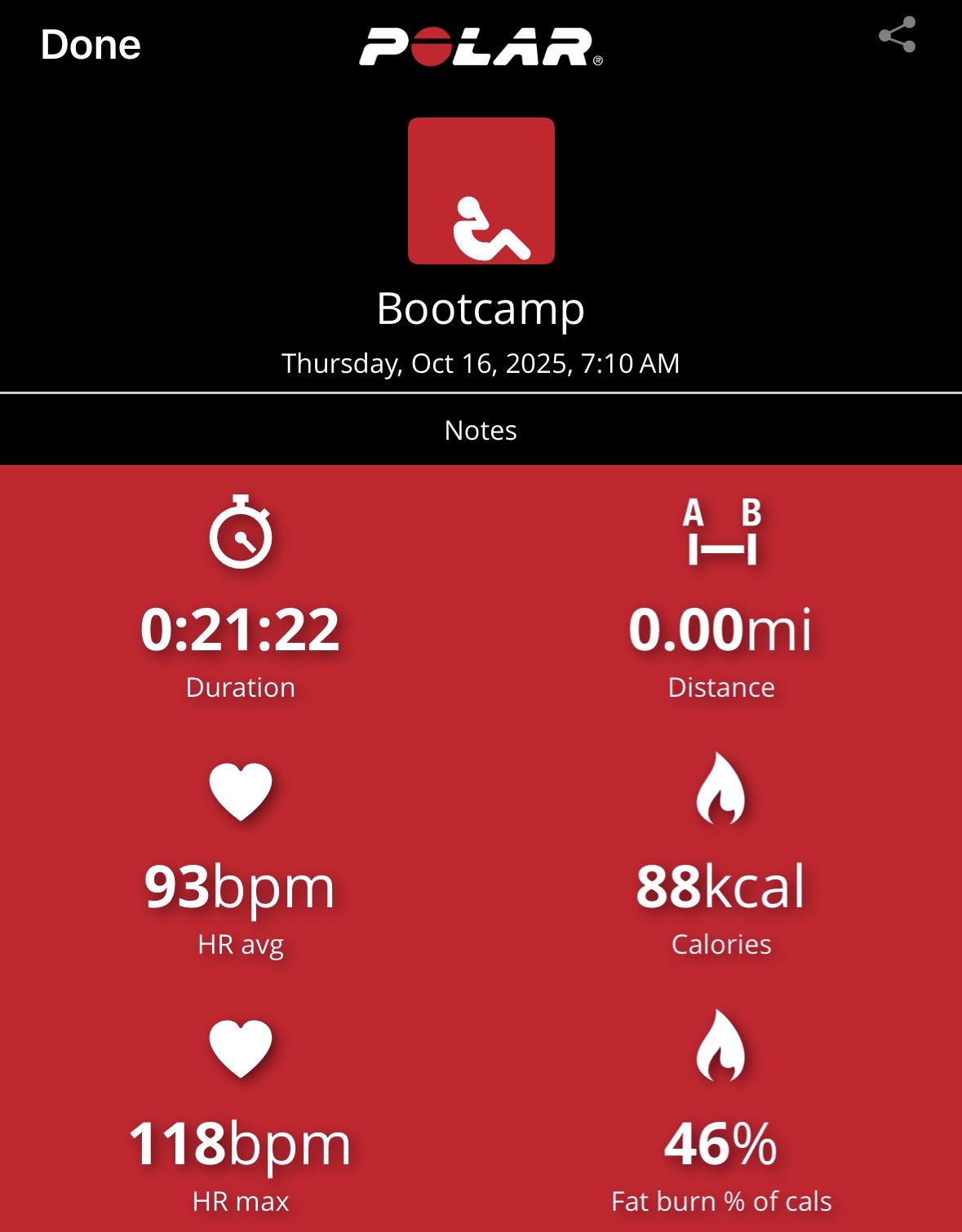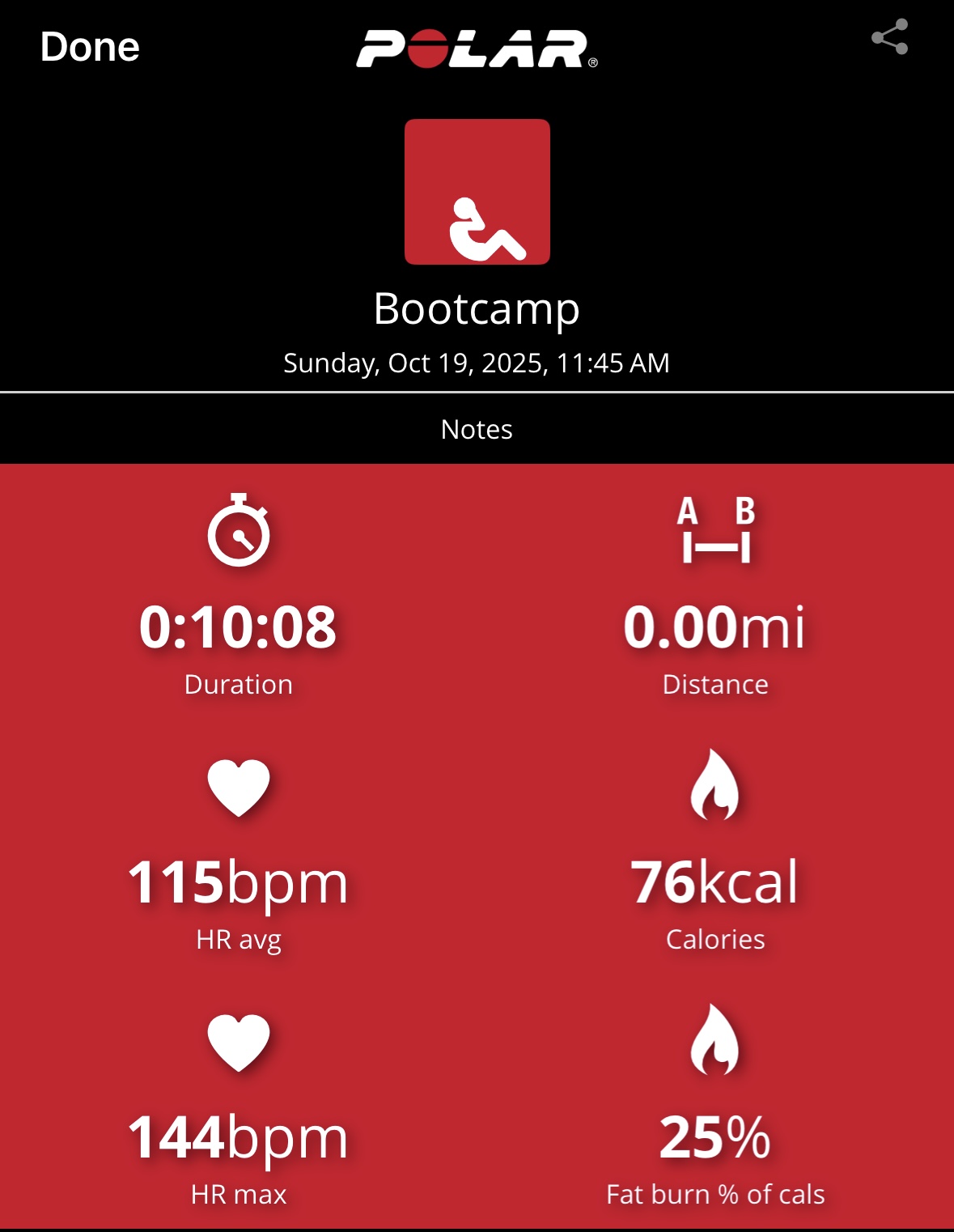 My heart rate data shows 76 calories burned in 10-min with average and max heart rates of 115 bpm and 144 bpm, respectively, with most of the workout in Zone 3. This workout was more difficult for me than the heart rate data suggests, although my max heart rate ramped near the end with the final pushups. I loved this workout and actually felt out-of-breath at times. I will be adding it to my regular schedule as a stack and even standalone on busy days. Awesome stuff, Tony. Bring it!