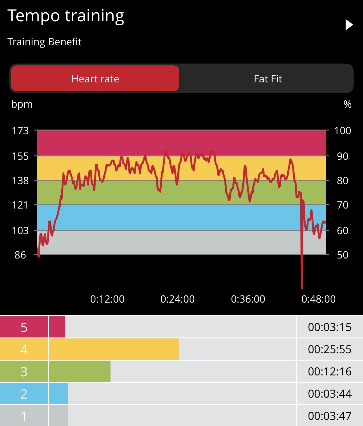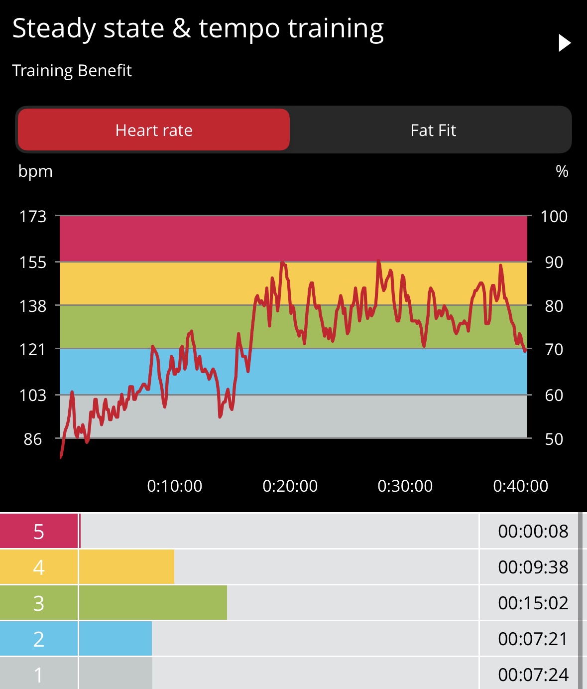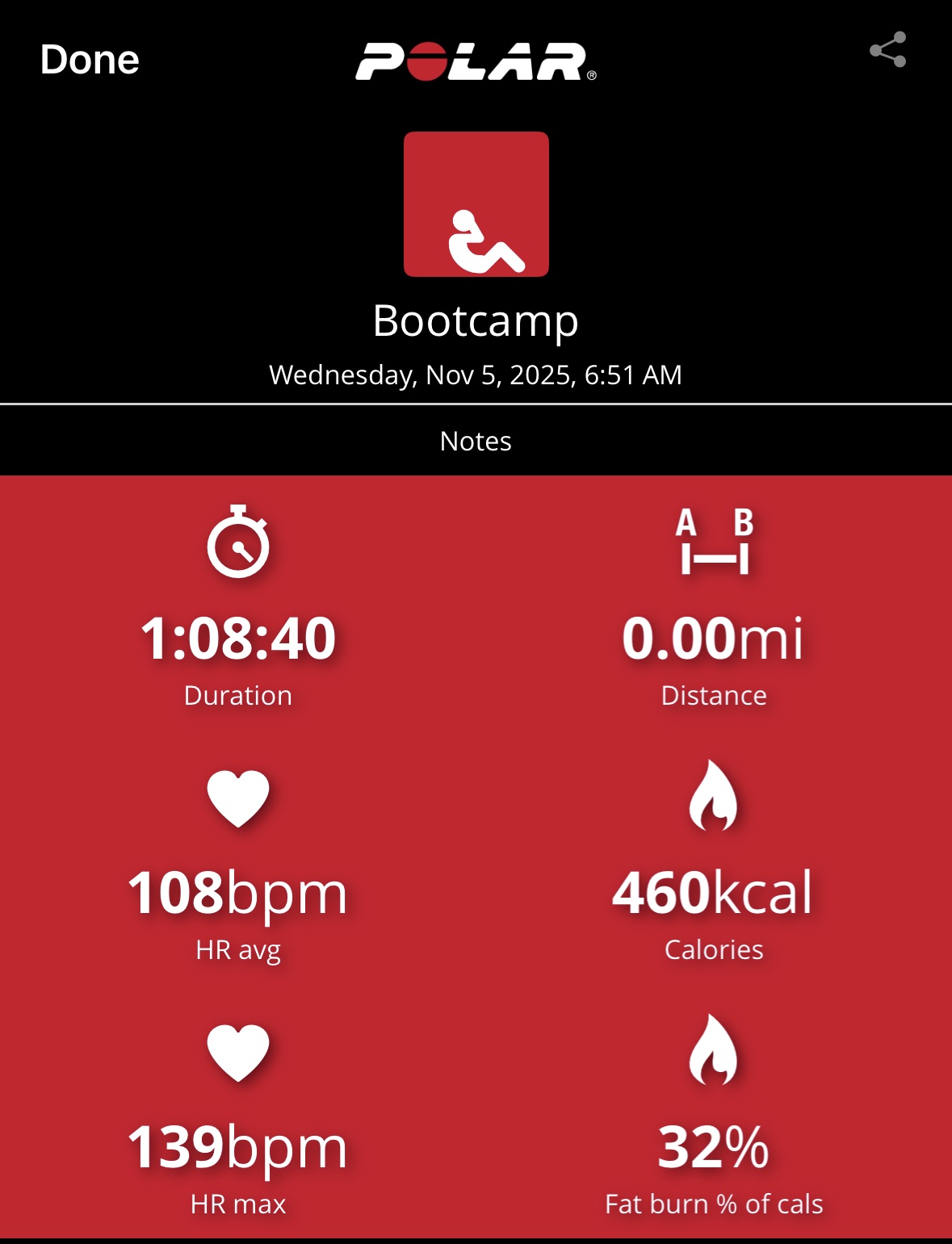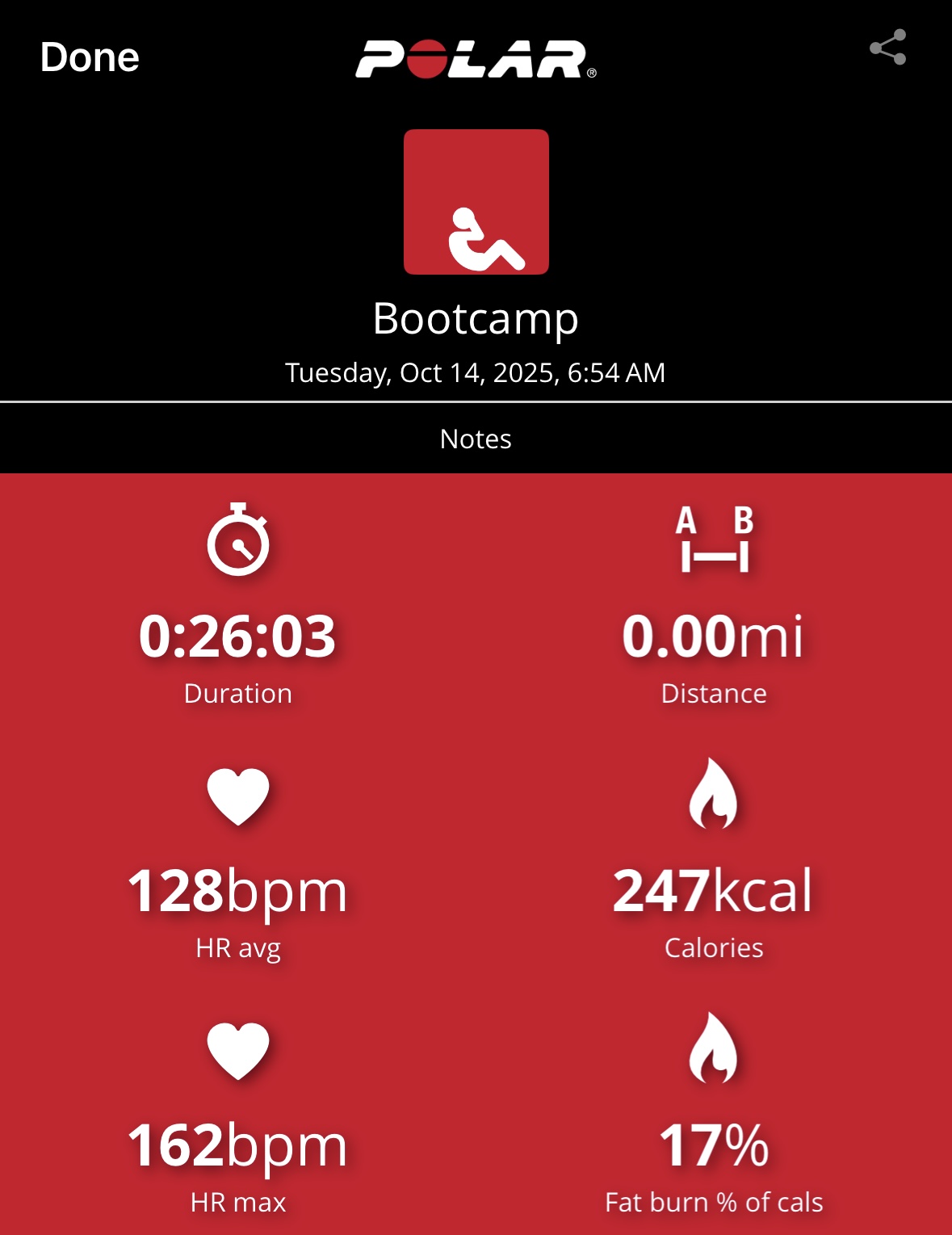 My heart rate data shows 76 calories burned in 10-min with average and max heart rates of 115 bpm and 144 bpm, respectively, with most of the workout in Zone 3. This workout was more difficult for me than the heart rate data suggests, although my max heart rate ramped near the end with the final pushups. I loved this workout and actually felt out-of-breath at times. I will be adding it to my regular schedule as a stack and even standalone on busy days. Awesome stuff, Tony. Bring it!
