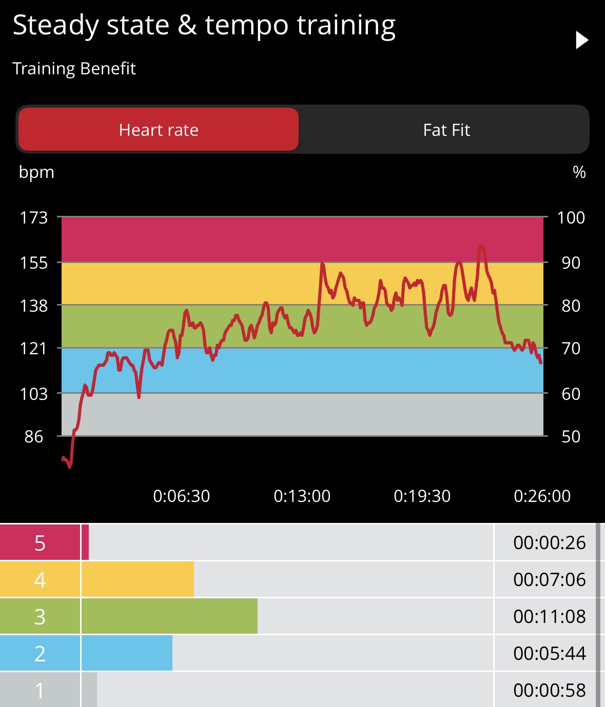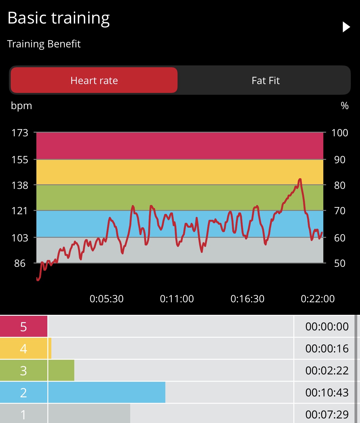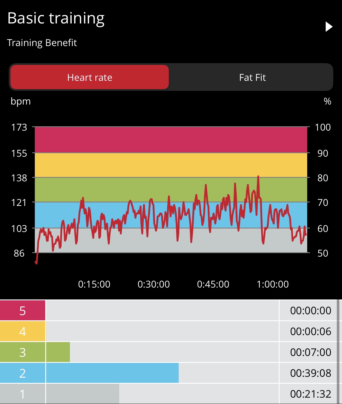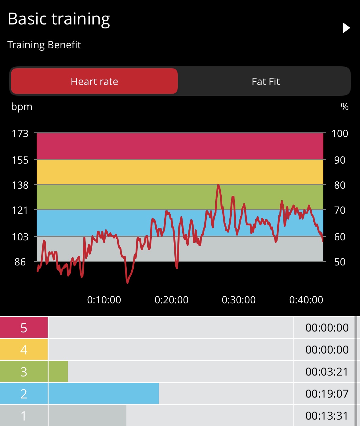 There is no warmup so you get right into the core work. I recommend a quick warmup on your own to safely transition into this challenging routine. The moves in Crunch Town include boat pumpers, alternating jack knife crunch, scissor crunches, banana X crunches, leg circles, figure 4 crunch twist, split leg reach, torso twister/straight leg crunch, swiss twist, hip raisers, and 4 punch crunch. My heart rate data shows 88 calories burned in 22-min with average and max heart rates of 93 bpm and 118 bpm, respectively, with most of the workout in Zone 1, as expected. I mostly followed the Power Up variations, but had to leverage the Power Down on a couple moves and/or support my lower back given my history of back issues.