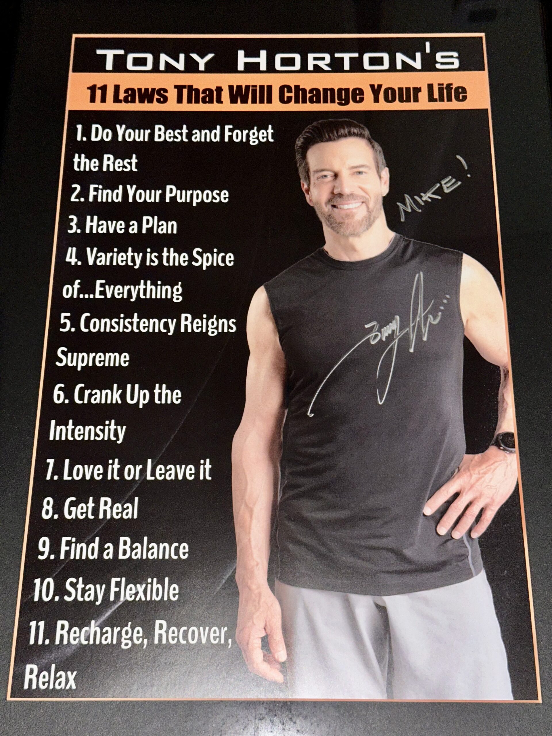 • Tony. I have a long history of appreciation for Tony Horton. As I mentioned, P90X changed my life in many ways and Tony has always been kind to me and my family. His chest and back workouts are still some of the best, most challenging routines with bodyweight control given the broad range of push-up and pull-up variations.